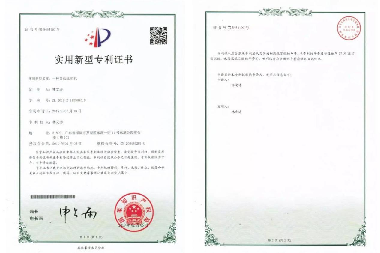 2019年12月,林文濤參加中國(guó)科協(xié)舉行的“全國(guó)青少年科技創(chuàng)新大賽”,獲得深圳市二等獎(jiǎng)。他發(fā)明的成品雨傘自動(dòng)絲印機(jī),榮獲實(shí)用新型專(zhuān)利證書(shū)。這種自動(dòng)絲印機(jī),極大地提高了工作效率,在一把雨傘上印刷一個(gè)logo僅僅需要單人5秒的時(shí)間。