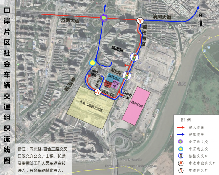 口岸片區(qū)社會車輛交通組織流線圖