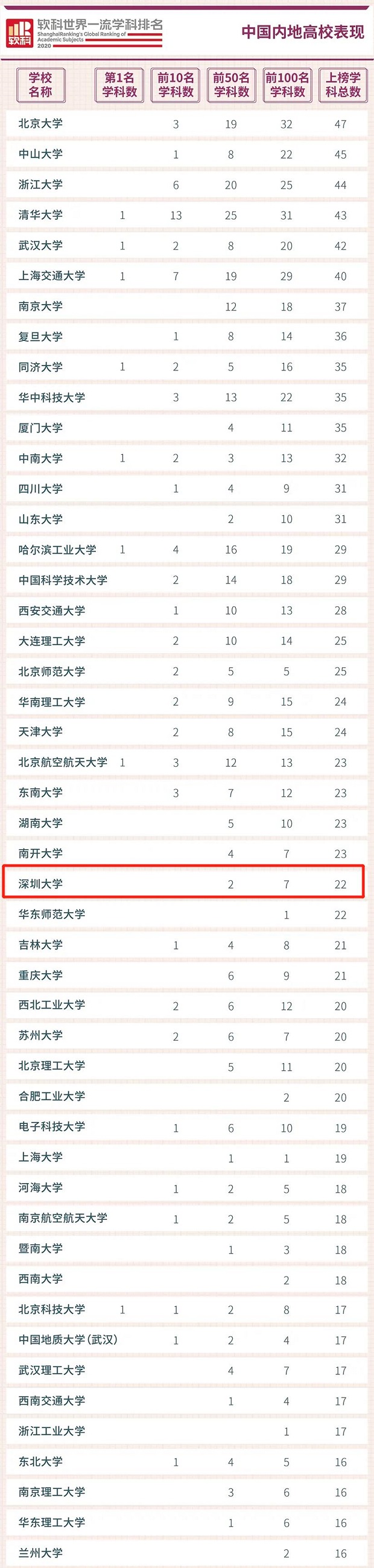2020軟科世界一流學(xué)科排名發(fā)布 深大7學(xué)科進(jìn)入世界前100