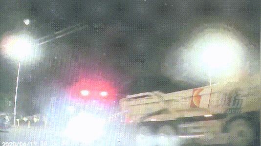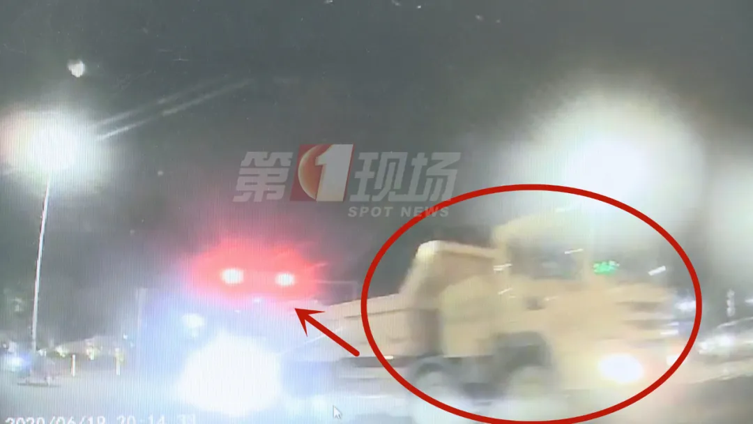 事故發(fā)生在6月19號(hào)晚上8點(diǎn)多,可以看到黑色小車(chē)在信號(hào)燈開(kāi)始閃爍的時(shí)候開(kāi)過(guò)光僑路路口,正好被一輛左轉(zhuǎn)泥頭車(chē)擋住了路。