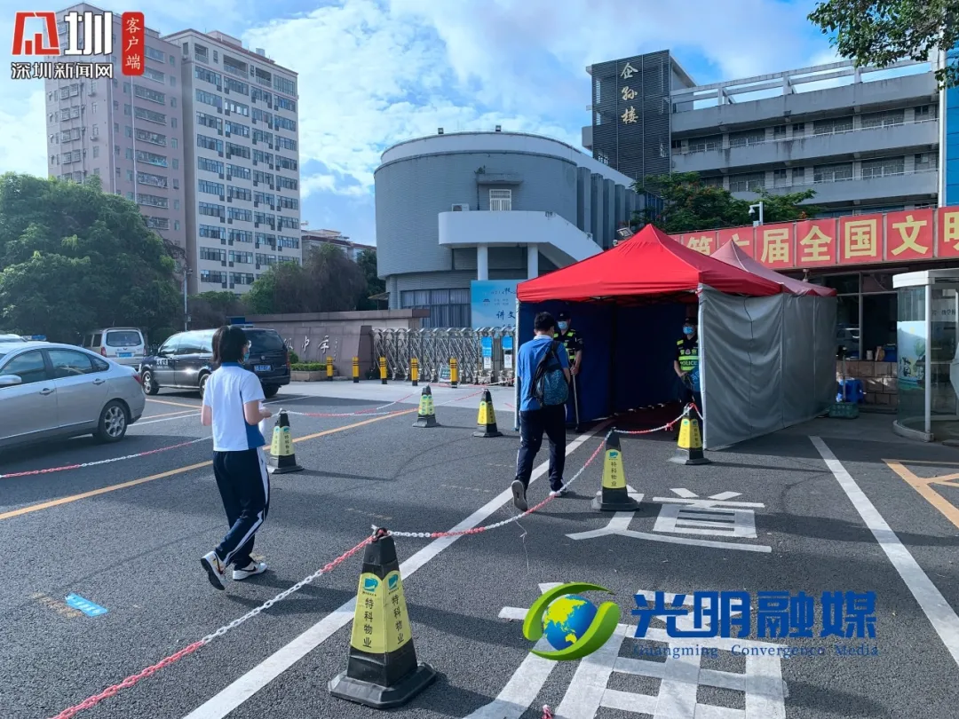 早上七點十五分,記者來到光明區(qū)高級中學考點,學生已經(jīng)開始有序走入考場。