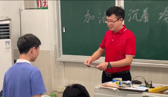 七點五十分,高三年級老師叫同學(xué)名字挨個上臺發(fā)放準考證,提醒學(xué)生考試注意技巧,細心規(guī)范,按照平時周測的情況發(fā)揮就可以了。祝大家旗開得勝,馬到成功。