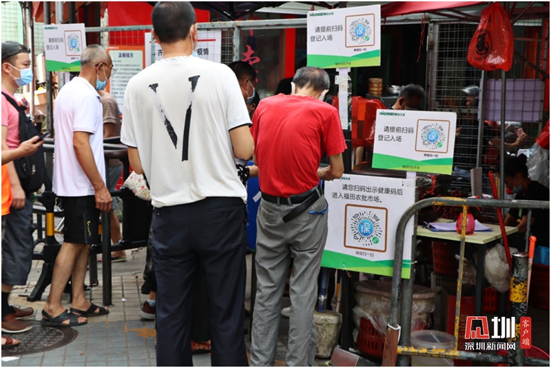 進入福田農批市場需出示健康碼,測量體溫。