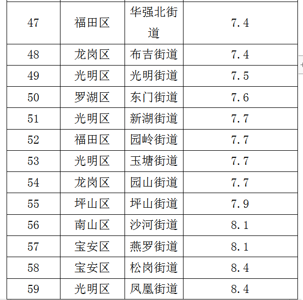 各街道及各區(qū)具體排名見(jiàn)下表。