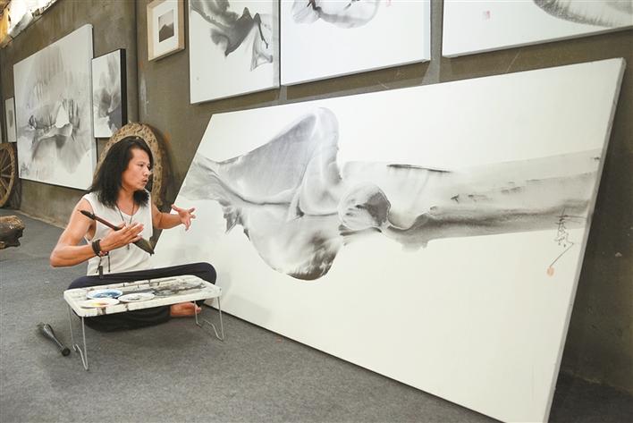 凌晨3點,梧桐山腳下一間低矮樓房房頂的畫室窗口亮起微弱的燭光。鄭泰均開始烹茶研墨,茶香裊裊中,手中動作不急不緩,任憑腦海中的靈感肆意飄散。不知不覺中,晨光從云層縫隙中泄下,山間的鳥鳴逐漸清晰,他走出畫室,在開闊的天地之間開始揮墨。