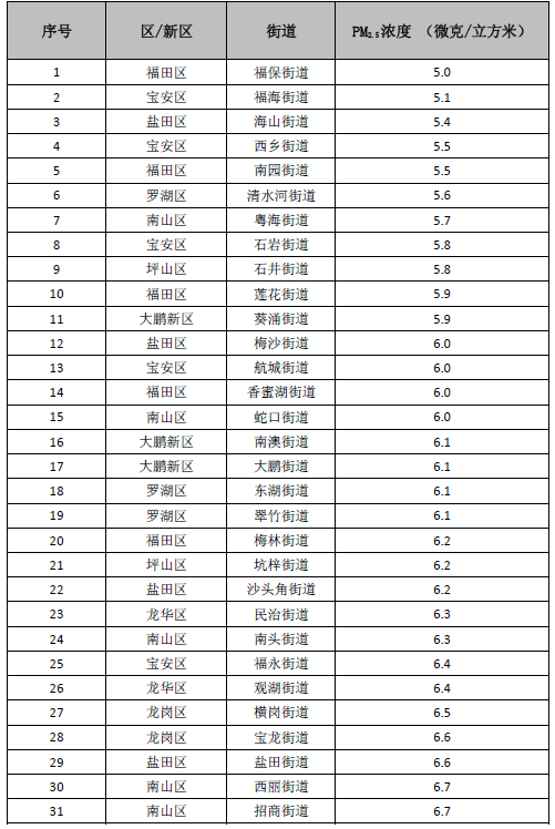 見圳客戶端·深圳新聞網(wǎng)2020年7月9日訊(見圳客戶端、深圳新聞網(wǎng)記者 葉梅 實習(xí)記者 徐樂釗)記者從深圳市生態(tài)環(huán)境局獲悉,2020年6月,全市74個街道PM2.5濃度在5.0-10.2微克/立方米之間,均值為7.0微克/立方米。