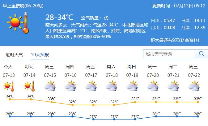見圳客戶端·深圳新聞網(wǎng)2020年7月13日訊 近來,鵬城天氣持續(xù)炎熱。截至12日,深圳已連續(xù)7天發(fā)布高溫黃色預警信號。市氣象臺預測,13-14日晴天間多云。13日氣溫28-34℃,中北部地區(qū)最高氣溫再高1-2℃。市內(nèi)維持3-4級西南風,沿海地區(qū)最大陣風6級。最小相對濕度為60%,最大相對濕度為90%。