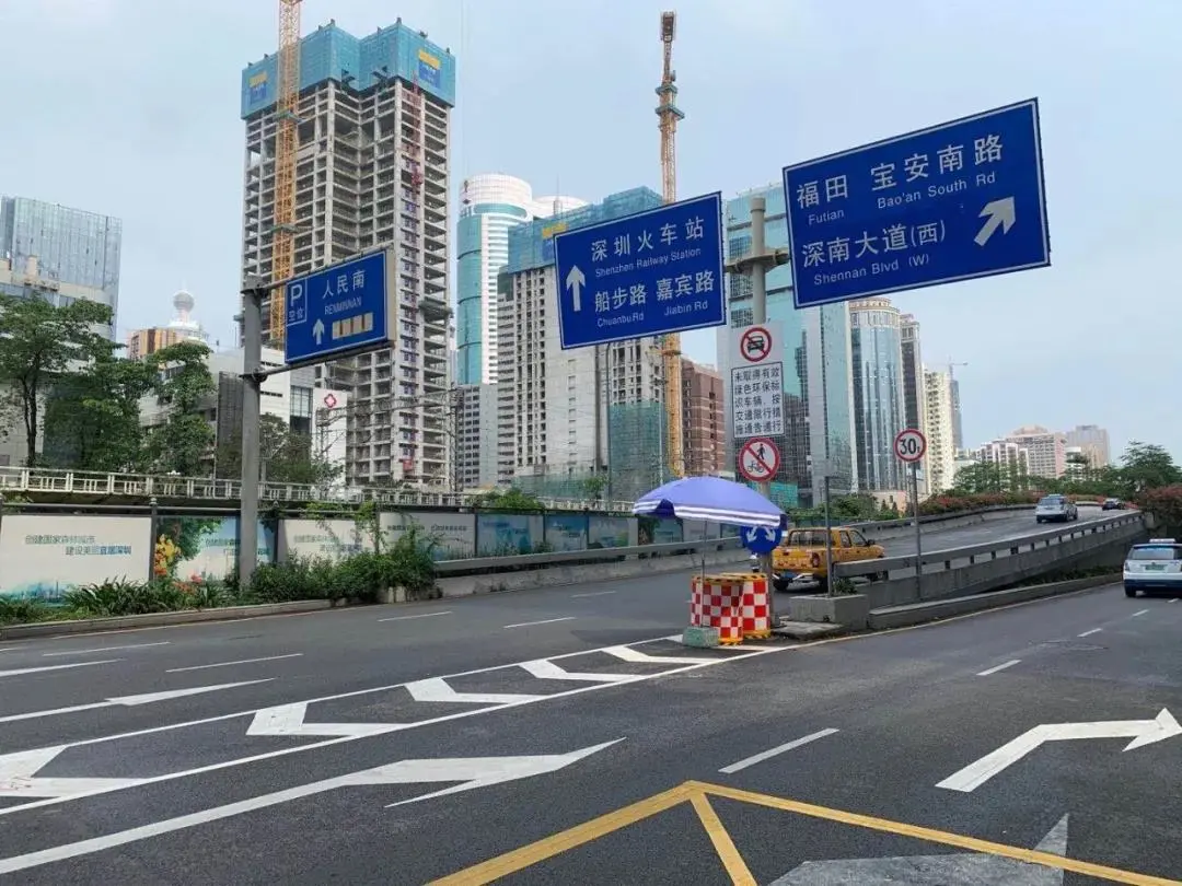 這條神仙“藍(lán)帶”原來就在東門步行街周邊的和平路跨線橋。這個地方,交通出行量不是一般的大,因?yàn)檫@里有3大商圈鎮(zhèn)著:萬象城商圈、東門商圈、地王商圈。