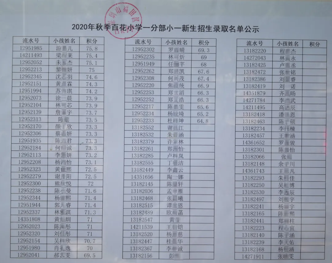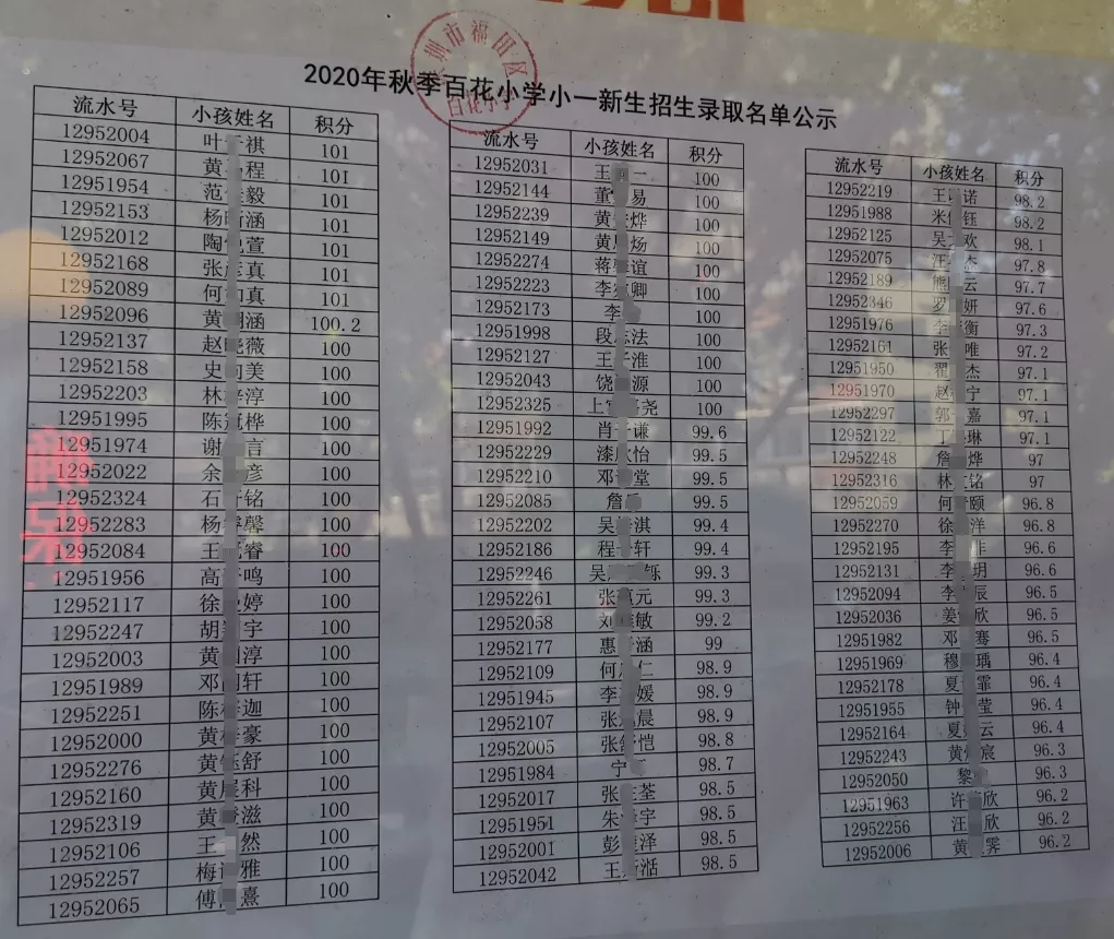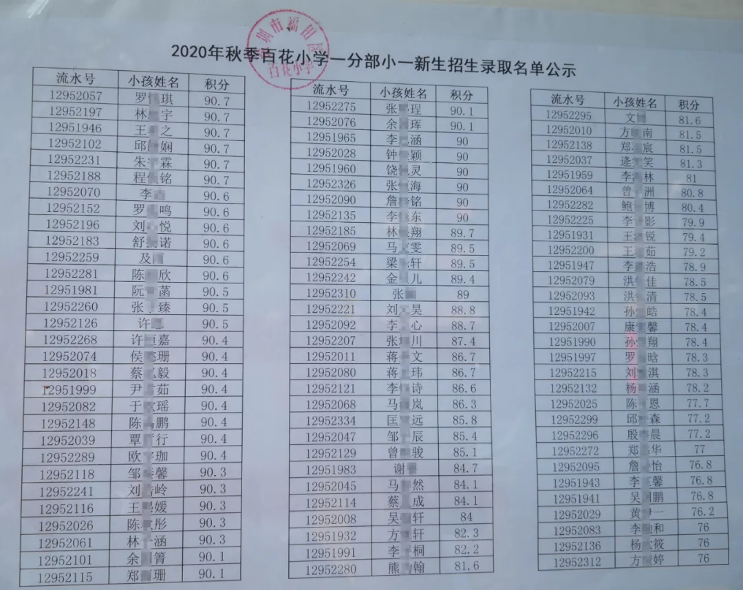 小一家長(zhǎng)們關(guān)心的2020年公辦小一年級(jí)新生報(bào)名積分錄取名單今天開始放榜啦。