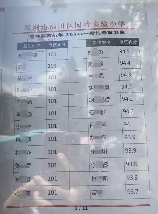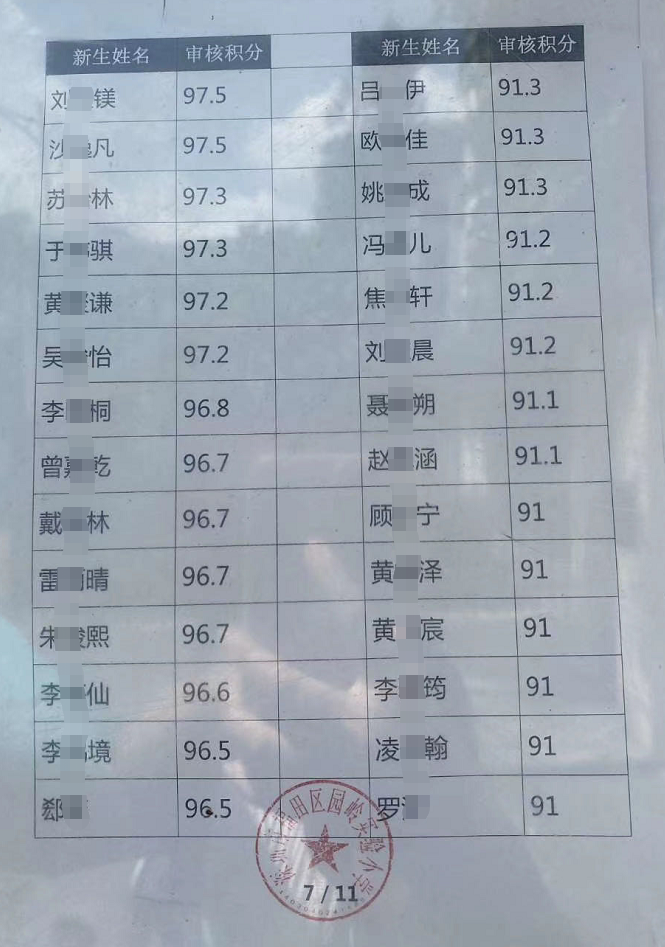 2020年福田區(qū)公辦小一新生錄取名單來了,部分學校最低錄取積分曝光
