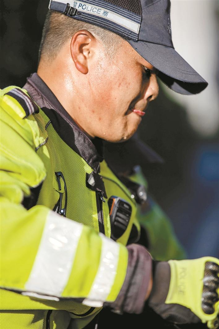 見圳客戶端·深圳新聞網(wǎng)2020年7月20日訊(晶報記者 陸洋/文 賴犁/圖)盛夏的鵬城,驕陽似火。轟鳴的馬達、300多斤的中型摩托車、20多斤的制服與頭盔……這是深圳交警鐵騎隊員日常工作里的基本裝備。