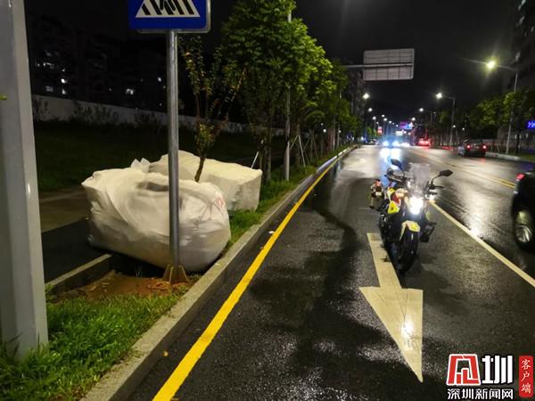 9月18日,羅湖大隊筍崗中隊警力馬清田、楊宇翰巡邏至珠嶺路時,發(fā)現(xiàn)一大袋泡沫被遺落在機動車道,馬清田、楊宇翰立即上前將泡沫移至人行道上,保障該路段車輛安全、有序通行。