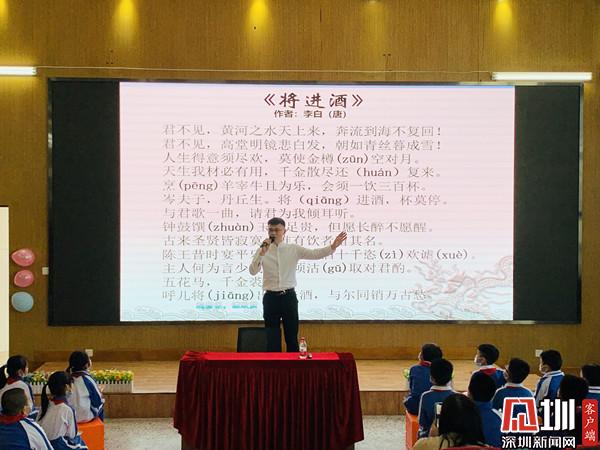 深圳新聞網(wǎng)訊(深圳新聞網(wǎng)記者 彭桂紅 通訊員 梁文雅)為進一步弘揚中華優(yōu)秀傳統(tǒng)文化,近日,深圳市錦田小學特邀青年文化學者、深圳市百姓學習之星、深圳市公益閱讀推廣人、深圳市首屆家園文化文學會會長晉玉東為廣大師生開展了一場別開生面的“中國古典詩詞朗誦藝術(shù)鑒賞——兼談如何朗誦好一首詩”公益文化講座。羅湖區(qū)錦田小學德弘校區(qū)副校長劉向陽、羅湖區(qū)錦田小學德弘校區(qū)主任張俊暉、羅湖區(qū)未來學校主任謝淑紅、德弘二年級家委代表以及語文科組老師,一同參加?;顒佑砂嘀魅瘟何难藕蛯W生劉沛東、張家琪共同主持,近200名學生參加了講座活動。整場講座師生熱情高漲,主講嘉賓深入淺出、娓娓道來,參與學生思維活躍、表現(xiàn)積極,帶動校園形成了學習詩詞文化的良好氛圍。