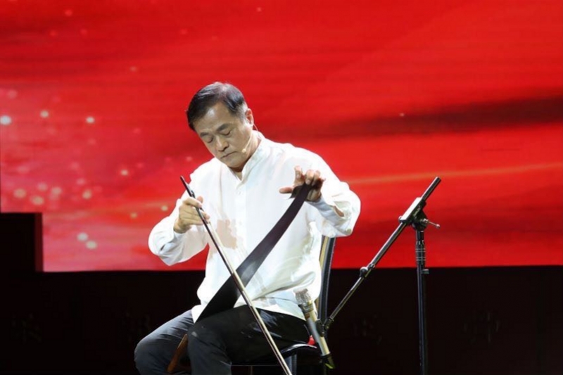 隨后,《鋸琴藝術(shù)》傳承人李元慶在不斷變換鋸片彎曲角度、拉動(dòng)馬尾弓期間,奏出一首長達(dá)近4分鐘的悠揚(yáng)樂曲。他說,自己拉了30年鋸琴,希望讓更多人了解這門非遺藝術(shù)。在他的鼓勵(lì)下,觀眾席里兩名小學(xué)生舉手上臺(tái),用鋸琴敲出長短不一的音符。