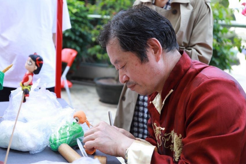另一方面,活動(dòng)還設(shè)有非遺集市,《王氏面塑》《楊氏中國結(jié)》《田氏剪紙》《聶氏麥稈畫》《臉譜面具繪畫》《糖畫》等一批傳統(tǒng)藝術(shù)項(xiàng)目傳承人來到現(xiàn)場,亮出“看家本領(lǐng)”制作藝術(shù)品,吸引不少市民到場學(xué)藝。