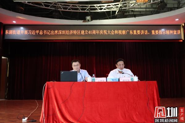 見(jiàn)圳客戶端·深圳新聞網(wǎng)11月26日訊(記者 劉晨 通訊員 魏官明 陳惠冰)11月26日下午,深圳市羅湖區(qū)東湖街道舉行習(xí)近平總書(shū)記出席深圳經(jīng)濟(jì)特區(qū)建立40周年慶祝大會(huì)和視察廣東重要講話、重要指示精神宣講報(bào)告會(huì),活動(dòng)特邀羅湖區(qū)委宣講團(tuán)成員、區(qū)發(fā)展研究中心黨組書(shū)記、主任王西星作主題宣講。 街道黨政領(lǐng)導(dǎo),街道各辦、中心業(yè)務(wù)負(fù)責(zé)人,各社區(qū)黨委書(shū)記、副書(shū)記,股份公司董事長(zhǎng),街道機(jī)關(guān)各黨支部及各社區(qū)黨建組織員、黨員共100余人參加了宣講活動(dòng)。活動(dòng)由街道黨工委副書(shū)記、人大工委主任謝統(tǒng)敏主持。