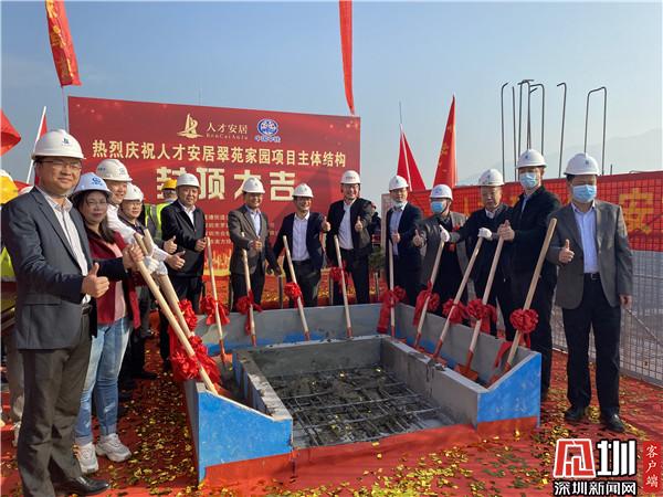 見圳客戶端·深圳新聞網(wǎng)1月22日訊(記者 李慧)“今天感到非常開心,四年前我們就期待這一天,這一天終于到來了?!?/span> 翠苑家園回遷業(yè)主胡先生如是說道。1月22日上午,由深圳市羅湖區(qū)蓮塘街道辦為實施主體、人才安居集團旗下羅湖人才安居公司代建的首個城市更新項目翠苑家園項目完成結(jié)構(gòu)封頂。當天,羅湖區(qū)住房和建設(shè)局、區(qū)審計局、區(qū)城市更新和土地整備局、人才安居集團以及回遷業(yè)主等代表共同見證并完成最后一方混凝土澆筑。