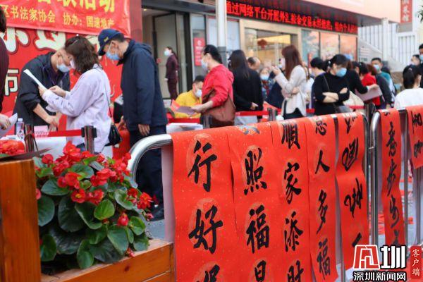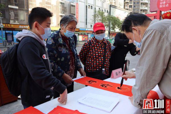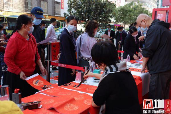 據(jù)悉,羅湖區(qū)書法家協(xié)會于2021年春節(jié)前夕組織一批優(yōu)秀書法家深入社區(qū)基層,現(xiàn)場為群眾書贈春聯(lián),書贈福字,目前活動先后在羅湖美術(shù)館南廣場、漁民村、羅湖區(qū)委等地舉辦多場。羅湖區(qū)書法家書贈春聯(lián)活動已連續(xù)舉辦了22年,深受群眾喜愛,成為羅湖的一項品牌活動。