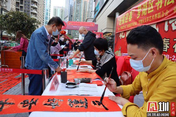 見圳客戶端·深圳新聞網(wǎng)2月3日訊(記者 劉晨)由羅湖區(qū)文化廣電旅游體育局、羅湖區(qū)文學藝術(shù)界聯(lián)合會主辦,羅湖區(qū)書法家協(xié)會承辦,國速地產(chǎn)協(xié)辦的“送福迎春”——羅湖區(qū)書法家書贈春聯(lián)活動2月1日在羅湖區(qū)寶安南路國速大廈南廣場舉行。