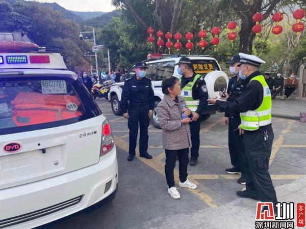 得知該情況后,現(xiàn)場隊(duì)員一方面穩(wěn)定老人家情緒,另一方面向其了解家人的基本情況。據(jù)老人描述,當(dāng)天她與女兒和女婿兩人來到梧桐山游玩,結(jié)果不小心走散。而老人身上并沒有攜帶相關(guān)證件和通訊工具,也無法提供家人具體聯(lián)系方式和證件號(hào)碼。由于當(dāng)時(shí)游人眾多,為確保老人安全,盡快幫助其找回走散的家人,現(xiàn)場隊(duì)員立即與交警隊(duì)指揮中心反映情況,并聯(lián)系東湖派出所協(xié)同開展調(diào)查。在執(zhí)勤交警與派出所警力的緊急幫助下,老人懸著的心也總算放下,并對(duì)隊(duì)員的熱心幫助表示衷心感謝。