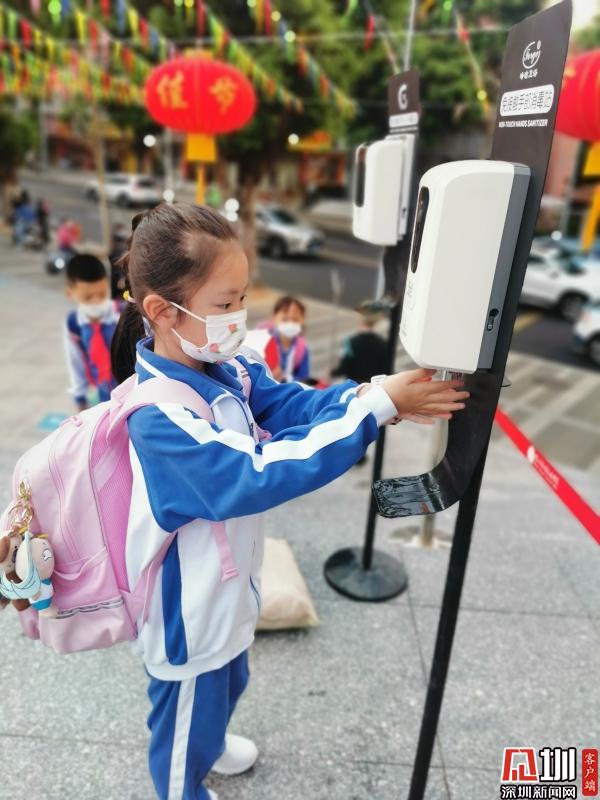 松泉實(shí)驗(yàn)小學(xué),孩子們主動(dòng)洗手消毒。