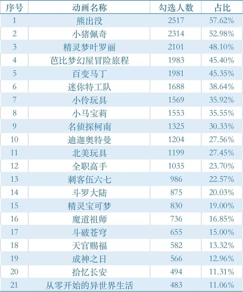 消費調(diào)查選取21部有代表性的未成年人動畫片