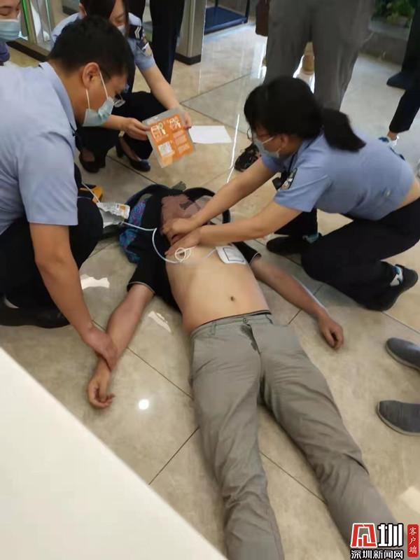 5月8日上午,市民韓先生及朋友李先生同行前往羅湖車管所處理個人交通違章業(yè)務(wù)。正當兩人在車管大廳咨詢臺詢問相關(guān)業(yè)務(wù)時,韓先生突發(fā)身體不適,徑直癱軟在朋友李先生身上?,F(xiàn)場值班民警陳瑞、李曉燕、楊濤發(fā)現(xiàn)該情況后,快速上前查看,只見該男子躺在地上,雙目緊閉、臉色發(fā)青、心臟驟停、呼吸微弱,在其耳邊連聲叫喊,也沒有任何反應(yīng)。