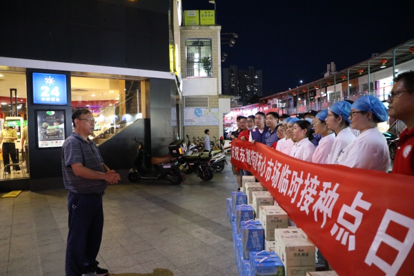 “大家辛苦了,感謝大家的辛勤付出!”在布心市場接種點,程時菊首先向全體工作人員致以誠摯的感謝,并叮囑他們要注意勞逸結(jié)合,做好自身防護。他強調(diào)全體工作人員面對艱苦的工作環(huán)境,沒有絲毫退縮,努力克服種種困難,始終以飽滿的熱情、昂揚的斗志,堅守崗位、加班加點、辛勤工作,每天圓滿完成了新冠疫苗接種清零任務。目前深圳疫情防控形勢嚴峻,希望大家繼續(xù)發(fā)揚攻堅克難、甘于奉獻的精神,全力加快新冠疫苗接種速度,為人民群眾的生命健康筑起堅實屏障。