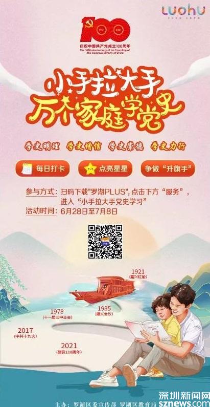 讀特客戶端·深圳新聞網(wǎng)2021年6月28日訊(記者 劉嘉敏 彭桂紅 通訊員 李瑩瑩)“七一”將至,為慶祝中國共產(chǎn)黨成立100周年,進(jìn)一步推動(dòng)羅湖區(qū)黨史學(xué)習(xí)教育走深走實(shí),羅湖區(qū)委宣傳部聯(lián)合羅湖區(qū)教育局于6月28日在“羅湖Plus”客戶端正式推出“小手拉大手”萬個(gè)家庭學(xué)黨史活動(dòng)。當(dāng)天,羅湖區(qū)委常委、宣傳部部長呂漫妮,羅湖區(qū)副區(qū)長、二級(jí)巡視員宋強(qiáng)等領(lǐng)導(dǎo)出席啟動(dòng)儀式。