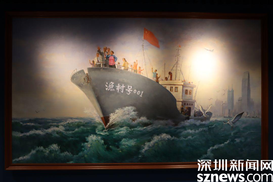 最后,直播鏡頭來到尾廳,這里播放著羅湖形象宣傳片,油畫《勇立潮頭》展示了漁民村在新時(shí)代繼續(xù)勇立潮頭的信心和決心。