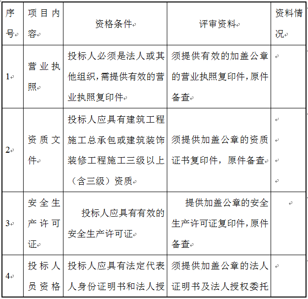 2.評(píng)議標(biāo)準(zhǔn)以招標(biāo)人和招標(biāo)機(jī)構(gòu)的意見(jiàn)為準(zhǔn);注:1.以上資格審查合格條件標(biāo)準(zhǔn)中如出現(xiàn)一處不符合要求,其投標(biāo)報(bào)名將不被接受;