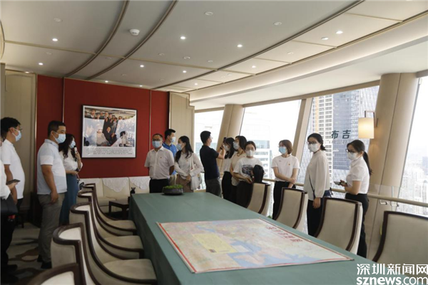 “不到國貿(mào),不算來過深圳?!眹Q(mào)是深圳的一個時代記憶,國貿(mào)大廈見證了深圳改革開放的輝煌詩篇。全體黨員干部跟隨著講解員的生動講解,透過檔案、文物、老照片等展品,以視頻、音頻等方式“沉浸式”學習,傾聽歲月回響,重溫奮斗征程,切身體會國貿(mào)大廈建設過程中創(chuàng)造“三天一層樓”的“深圳速度”。隨后,黨員干部來到旋轉餐廳鄧公廳,重溫鄧小平同志關于改革開放的重要思想。
