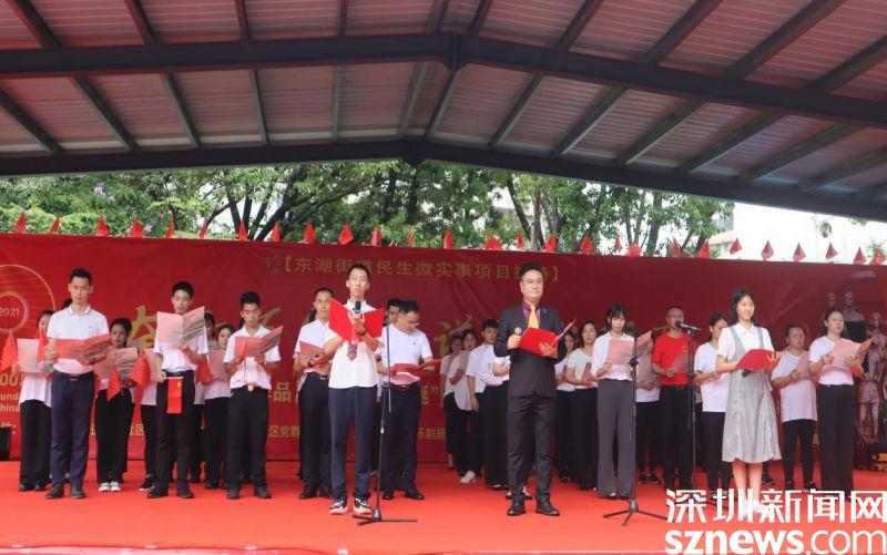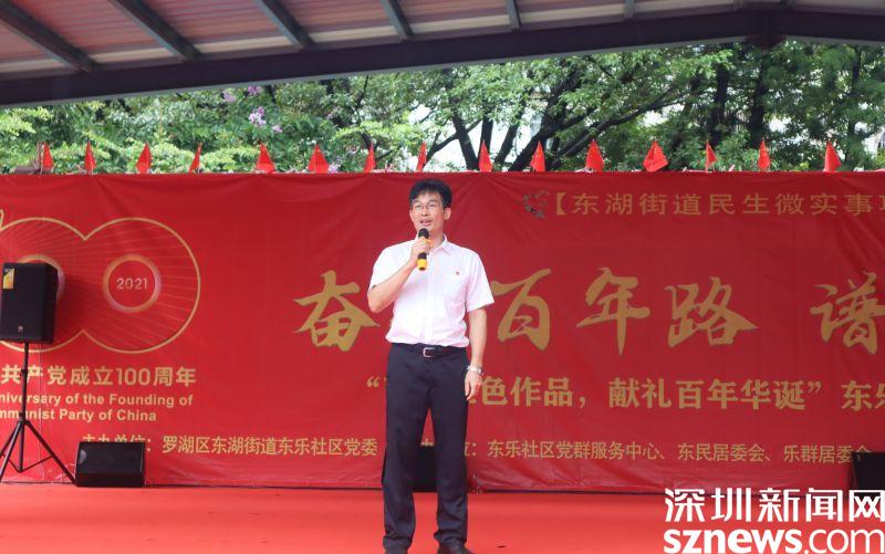 讀特客戶端·深圳新聞網2021年7月30日訊(見習記者 邱婕 通訊員 黃小花)百年征程波瀾壯闊、百年初心歷久彌堅、百年成就催人奮進、百年歌聲唱響今天。7月30日上午,“百幅紅色作品,獻禮百年華誕”東樂社區(qū)建黨100周年慶?;顒釉跂|樂花園文化廣場舉行。東湖街道黨工委副書記、辦事處主任劉慧堅,黨工委副書記、人大工委主任謝統(tǒng)敏,東湖街道二級調研員、東樂社區(qū)第一書記曾列文,東湖街道辦事處副主任李民,羅湖區(qū)退役軍人事務局副局長何朝陽,東樂社區(qū)黨委書記劉芳,東樂社區(qū)社工與義工及廣大居民朋友400余人參與此次活動。
