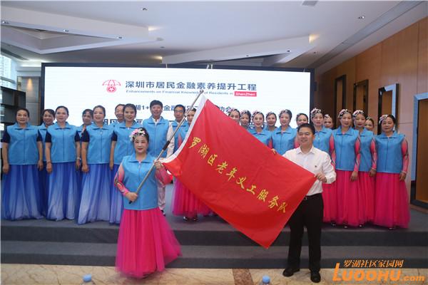 活動(dòng)現(xiàn)場(chǎng),翠竹街道辦事處、東門街道辦事處、桂園街道辦事處、筍崗街道辦事處等四家“百姓學(xué)金融”科普陣地獲授牌,平安銀行股份有限公司、國(guó)任財(cái)產(chǎn)保險(xiǎn)股份有限公司、中信銀行國(guó)際(中國(guó))有限公司、上海浦東發(fā)展銀行股份有限公司深圳分行、中國(guó)人壽財(cái)產(chǎn)保險(xiǎn)股份有限公司深圳市分公司、渣打銀行(中國(guó))有限公司深圳分行、星展銀行(中國(guó))有限公司深圳分行、中國(guó)銀行深圳市分行東門支行、中國(guó)農(nóng)業(yè)銀行深圳國(guó)貿(mào)支行、中國(guó)建設(shè)銀行深圳羅湖支行、交通銀行深圳羅湖支行等11家金融機(jī)構(gòu)獲授“金融社會(huì)服務(wù)天團(tuán)”,他們將一如既往擔(dān)當(dāng)“金融安全守護(hù)者”,幫助市民防范各類金融類詐騙陷阱;東縱合唱團(tuán)、深圳市羅湖區(qū)老年人協(xié)會(huì)作為老年義工服務(wù)隊(duì)獲授旗。