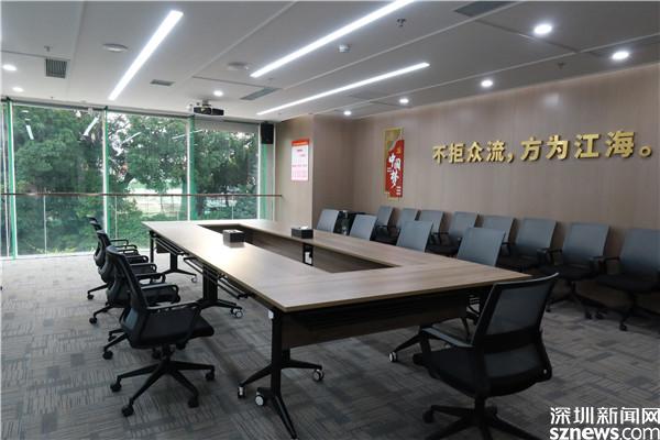 值得一提的是,趣·先行之家作為智慧辦公空間,一扇隔斷推拉門將空間分為辦公區(qū)和咨詢室,配套便捷可拼接式桌椅,使空間可靈活復合使用,既為“兩新”黨組織、群團組織、“兩代表一委員”提供了共享辦公空間,還為企業(yè)員工提供了法律及心理咨詢空間;作為開展重要中大型會議的初心會議室,也滿足了工作人員開展大型會議的需求。