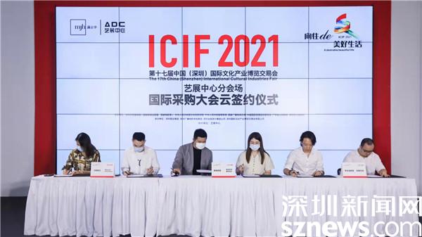 現(xiàn)場,還舉辦了國際采購大會(huì)云簽約儀式,因疫情未能到現(xiàn)場出席的外商代表以視頻的方式表達(dá)了對(duì)深圳文博會(huì)藝展中心分會(huì)場的關(guān)心與祝福。