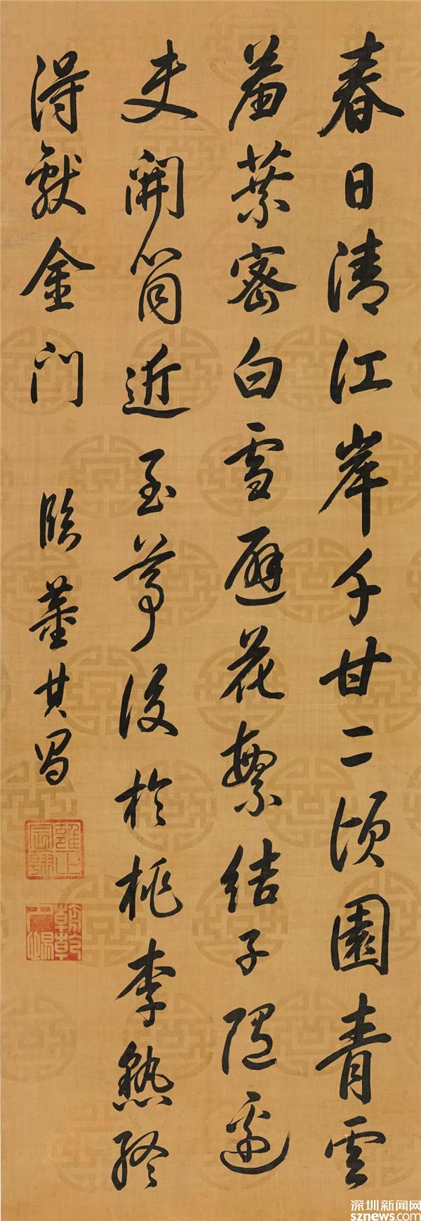 現(xiàn)場,還有嘉慶帝楷書七言詩、光緒帝楷書“恭儉惟德”、慈禧行書“頤壽”、肅親王百壽圖對屏、林則徐行書《圣主得賢臣頌》、劉墉行書節(jié)錄沈括《夢溪筆談》、丁汝昌行書詩句等作品。據(jù)主辦方介紹,《清代宮廷及名家書法展》之三十二件紫禁丹青,匯聚了甌江草堂主人易蘇昊先生二十多年收藏之精華。藏品多來自于文物公司和著名藏家,可謂來源有序。易蘇昊先生文物藝術品收藏之門類廣博,中國古代書畫、近現(xiàn)代書畫、當代書畫、前衛(wèi)性書畫、綾本書畫、瓷器、玉器、青銅器、竹木牙雕、文房四寶、鼻煙壺、雜項、西洋雕塑等,無所不包,件件精致。此次《清代宮廷及名家書法展》之三十二件紫禁丹青,乃其從收藏的數(shù)千件藏品中,遴選出的帝王御筆、詞臣墨跡之精華。自雍正至光緒,跨越近二百年,充分展現(xiàn)了清代宮廷書法的整體面貌,以供廣大藏家雅賞。