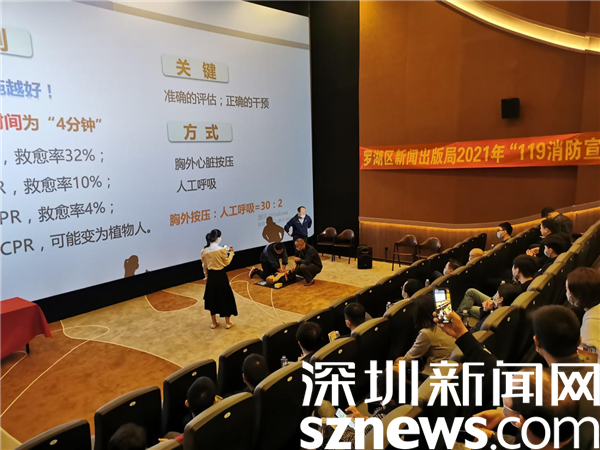 羅湖區(qū)委宣傳部常務(wù)副部長(zhǎng)章紅班對(duì)轄區(qū)行業(yè)“消防宣傳月”進(jìn)行部署和要求。隨后,安全專家講師羅靈在現(xiàn)場(chǎng)進(jìn)行了安全知識(shí)培訓(xùn)和心肺復(fù)蘇救助技能培訓(xùn)。