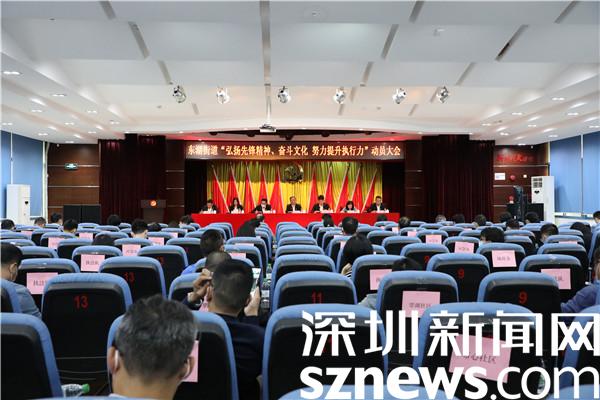 讀特客戶端·深圳新聞網(wǎng)2021年11月19日訊(記者 郭含笑 通訊員 黃貽凱)感恩奮進(jìn)跟黨走,緊鑼密鼓再出發(fā)。羅湖區(qū)第八次黨代會(huì)、區(qū)“兩會(huì)”的順利閉幕是一個(gè)結(jié)束,也是羅湖新征程、新使命、新奮斗的開始。為弘揚(yáng)羅湖光榮傳統(tǒng)、賡續(xù)羅湖血脈傳承,在街道全體黨員干部中形成憋足一口氣趕超奔跑、鉚足一股勁狠抓落實(shí)的風(fēng)氣,把先鋒精神、奮斗文化轉(zhuǎn)化為強(qiáng)大執(zhí)行力、踐行在奮斗新征程,11月19日下午,深圳市羅湖區(qū)東湖街道召開“弘揚(yáng)先鋒精神、奮斗文化 努力提升執(zhí)行力”動(dòng)員大會(huì)。街道黨工委書記程時(shí)菊等處級(jí)干部,各辦、中心全體在編人員,各社區(qū)黨委書記、副書記、副站長、城管專干共100余人參加會(huì)議。