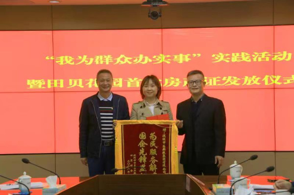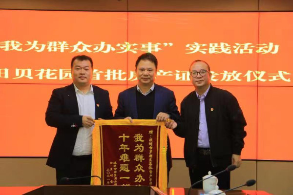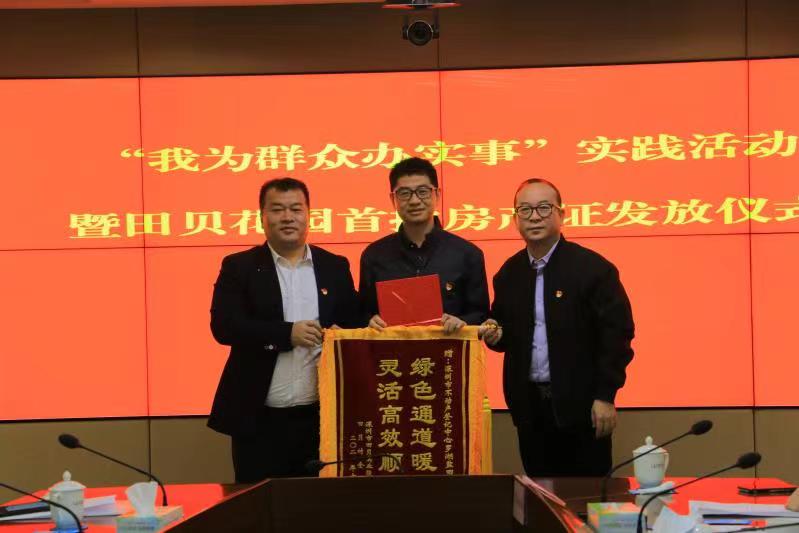 儀式當天,5名村民代表從羅湖區(qū)領(lǐng)導(dǎo)的手中接過了房產(chǎn)證,田貝股份合作公司向有關(guān)單位贈送錦旗表示感謝。