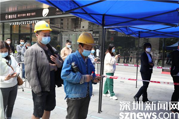 “請戴好口罩,保持一米距離,提前打開健康碼……”走進(jìn)水貝萬山,周邊商場和店鋪均已關(guān)閉進(jìn)行消殺,陸續(xù)有周邊市民在核酸檢測點(diǎn)有序排隊(duì)檢測。