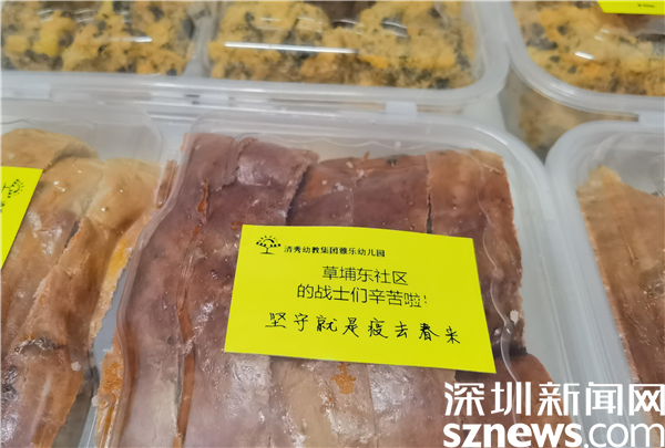 一腔熱忱,共克時(shí)艱。黨建引領(lǐng),筑起抗擊疫情的堅(jiān)固防線。在戰(zhàn)疫一線中,黨員先鋒勇戰(zhàn)疫,巾幗教師敢擔(dān)當(dāng)。教師志愿者積極發(fā)揚(yáng)“為人師表”的帶頭作用,用實(shí)際行動(dòng)彰顯教育人的精神,成為社區(qū)疫戰(zhàn)中的“硬核”擔(dān)當(dāng)。領(lǐng)隊(duì)老師劉小潔說(shuō),“大家激情滿懷,不喊累、不怕苦,能夠?yàn)榭箵粢咔槎κ且环莨鈽s與自豪!沒有一個(gè)冬天不可逾越,沒有一個(gè)春天不會(huì)來(lái)臨?!贝送?,老師們還為一線的抗疫戰(zhàn)士自制了暖心餐包,“草埔東社區(qū)的戰(zhàn)士們辛苦啦”“堅(jiān)守就是‘疫’去春來(lái)!”等暖心話語(yǔ)傳遞溫暖力量,匯聚勝利力量。