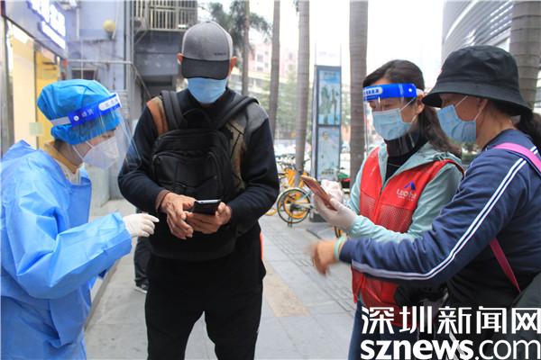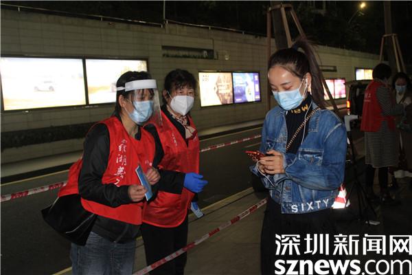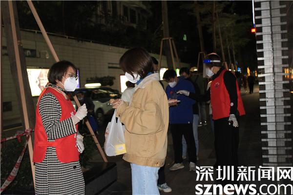 “楊妹,我來了,還帶來了一個人。”13日晚,正在羅湖區(qū)桂園街道老圍社區(qū)禧程酒店核酸檢測點忙碌的社工楊女士,接到志愿者溫寶珍的電話。溫寶珍從“0107疫情”開始以來,每天都在核酸檢測點協(xié)助核酸檢測,這晚她把自己的兒媳婦吳永霞也帶來了?!捌牌艅倧钠渌鐓^(qū)的核酸檢測點做完義工回來,聽說老圍社區(qū)需要人,放下飯碗就來了。婆婆這么大年紀(jì)了還沖在前面,我做兒媳婦的,怎么也要向婆婆學(xué)習(xí)啊?!眳怯老紝ι绻ふf?!皯?yīng)該的應(yīng)該的,疫情當(dāng)前,每個人都有義務(wù)出來與病毒作戰(zhàn),光是靠社區(qū)工作者不行,他們太累了?!睖貙氄溥呎f邊幫兒媳穿好義工服,把粵核酸的二維碼交給兒媳,并教兒媳如何在手機上查驗。