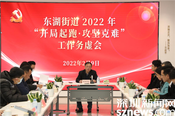 讀特客戶端·深圳新聞網(wǎng)2月10日訊(記者 謝秋平 通訊員 魏官明 陳惠冰)開局就要爭先,起跑就是沖刺。2022年2月9日,羅湖區(qū)東湖街道召開2022年“開局起跑·攻堅(jiān)克難”工作務(wù)虛會,再次傳達(dá)學(xué)習(xí)羅湖區(qū)2022年“開局起跑·攻堅(jiān)克難”干部大會會議精神,認(rèn)真統(tǒng)籌謀劃2022年街道攻堅(jiān)克難任務(wù),統(tǒng)一思想、凝聚合力,苦干實(shí)干、創(chuàng)新躍進(jìn),全面吹響高質(zhì)量發(fā)展的進(jìn)軍號,邁出奮力建設(shè)“幸福街區(qū)、生態(tài)東湖”的堅(jiān)實(shí)步伐。會議由東湖街道黨工委書記程時(shí)菊主持,街道全體處級領(lǐng)導(dǎo),各辦(中心)正科實(shí)職干部、各社區(qū)黨委書記參加了會議。