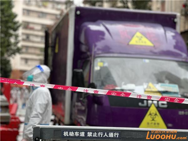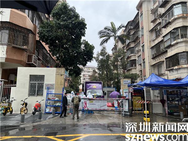 2月22日早上,記者來(lái)到處于管控區(qū)域的桂園街道鹿苑小區(qū)。只見(jiàn)身穿防護(hù)服的“大白”們來(lái)來(lái)往往地在門(mén)口忙碌著,偶爾有外賣(mài)小哥將外賣(mài)放在小區(qū)入口的貨架上便離開(kāi),雨水打濕了門(mén)前拉起的紅色警戒線。鹿丹村社區(qū)黨委書(shū)記陳姍姍披著簡(jiǎn)單的一次性雨衣,不斷響起的電話,居民的一聲聲詢問(wèn),都是她需要盡快處理的各項(xiàng)管控工作。