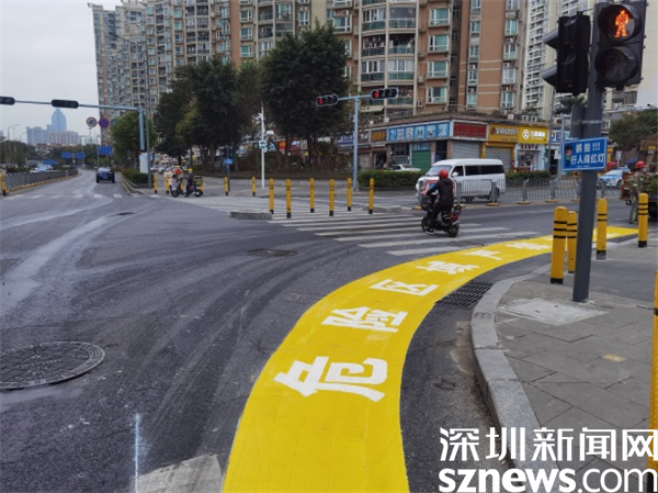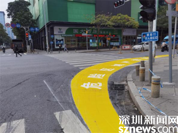 目前,羅湖轄區(qū)16個右轉(zhuǎn)彎危險區(qū)警示帶試點設(shè)置工作已初步完成,警示帶的視覺效果清晰醒目,既能夠直觀地警示行人及非機動車禁止進入機動車道等待紅綠燈,又能提醒右轉(zhuǎn)彎車輛在保證安全的前提下“轉(zhuǎn)大彎”,從而起到提升行人、非機動車、大型車輛駕駛員危險意識的作用。