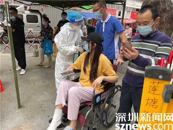 在大規(guī)模核酸采樣中,老幼病殘?jiān)械忍厥饫щy群眾在長時間排隊(duì)過程中,身體負(fù)擔(dān)較大。但在蓮塘社區(qū),所有的核酸點(diǎn)最左側(cè)通道都是“綠色通道”,志愿者在維持秩序疏導(dǎo)人流過程中,遇到需要幫助的困難群眾都會引導(dǎo)至綠色通道,提供方便、快捷的人性化服務(wù)。社區(qū)的貼心暖心舉措贏得了越來越多群眾的理解和支持,如今,即使在核酸采樣通道人員飽和的情況下,排隊(duì)群眾也都會自覺讓出位置給特殊群眾優(yōu)先。