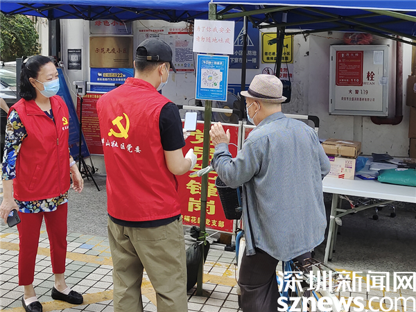 3月21日上午,在聚?;▓@黨員先鋒崗,老黨員張瑩和年輕黨員藍(lán)國亮在幫助居民掃場所碼。像這樣的新老黨員齊上陣,在畔山社區(qū)各黨支部還有很多,近日,轄區(qū)各核酸采樣點(diǎn)、小區(qū)出入口和城中村圍合卡點(diǎn),處處可見鮮紅的黨旗和忙碌的紅馬甲,他們用實(shí)際行動影響并帶動更多的熱心市民群眾參與社區(qū)服務(wù),為一線防疫工作“添磚加瓦”。