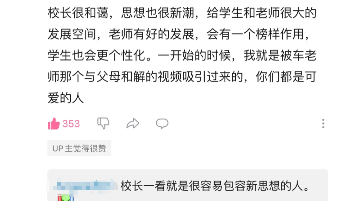 黃潔校長回答了該UP主提出的很多問題,黃潔表示,自己是一步一步從基層走上來的,她從大學(xué)畢業(yè)就當(dāng)老師了。從當(dāng)班主任開始,再到年級(jí)長、學(xué)生處主任、教學(xué)處主任……最后當(dāng)上校長。