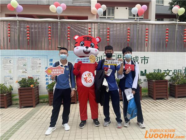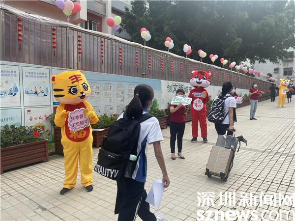 這是翠園東曉中學(xué)為歡迎學(xué)生返校,舉行的溫馨復(fù)學(xué)儀式,還為孩子們派發(fā)了暖心防疫用品?!盎丶业男那楹玫奖怼薄皧^斗沖刺、金榜題名”……不少孩子們紛紛舉著勵志牌與“小老虎”合照,宣告新學(xué)年的奮斗目標(biāo)。